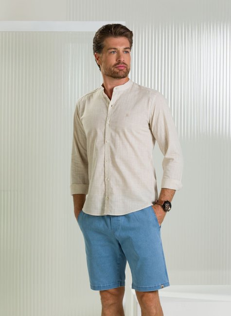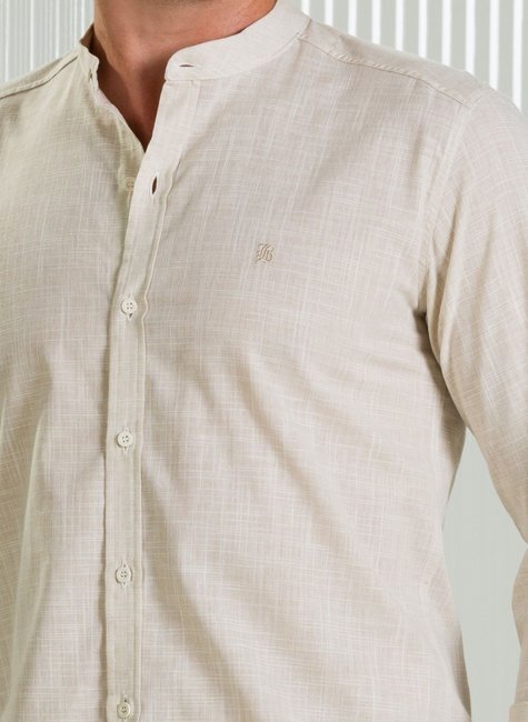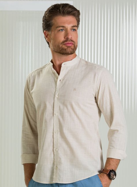 Sobre a Camisa Masculina Manga Longa BGT Slim Gola Padre Slub Areia