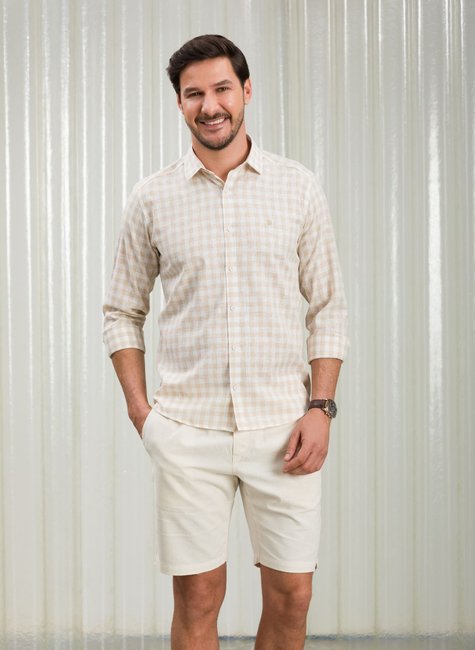 camisa masculina bgt baumgarten xadrez bege