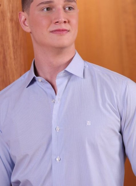 Camisa Masculina Manga Longa Elegance Slim Algodão Egípcio Azul com Listras