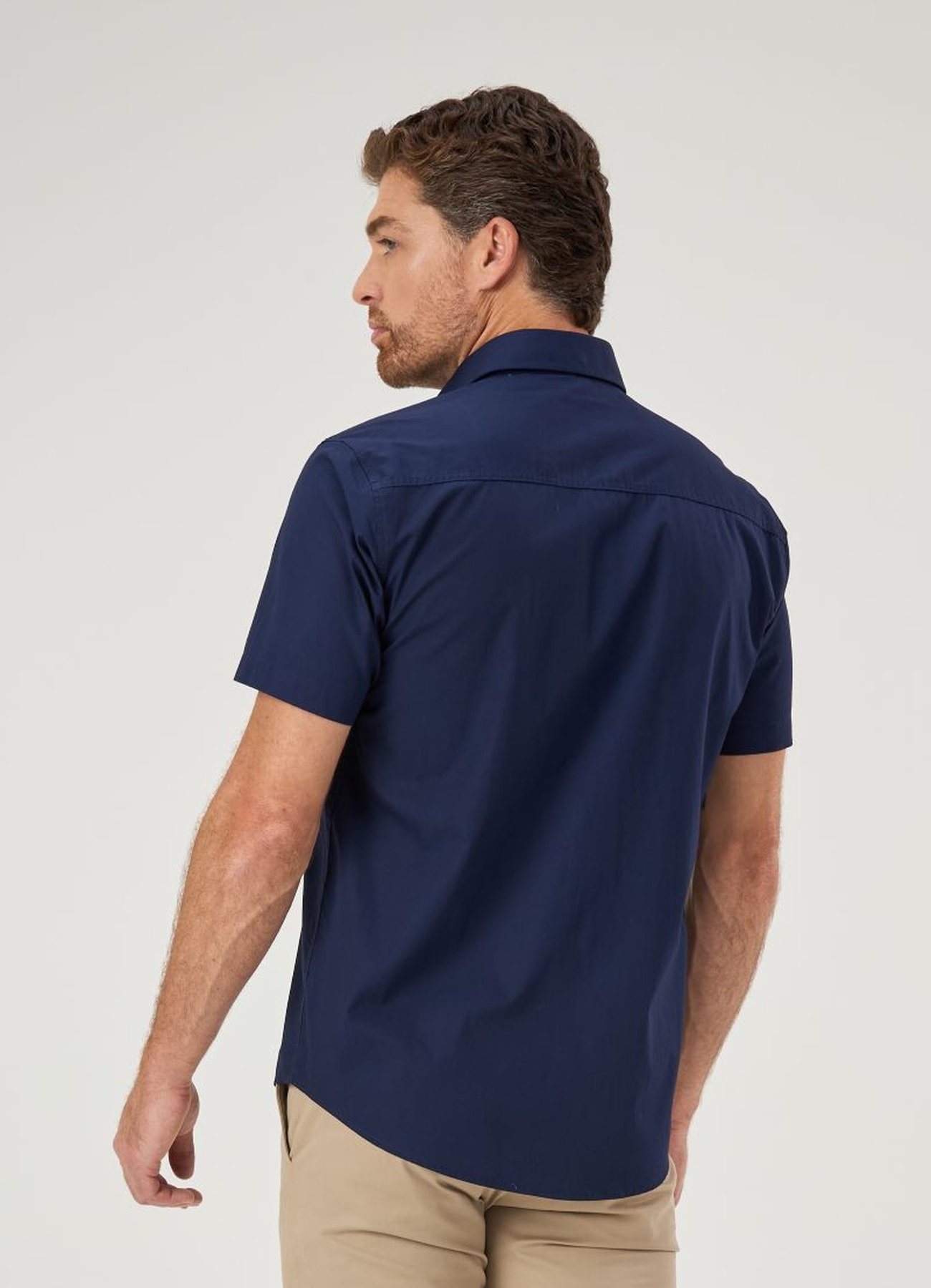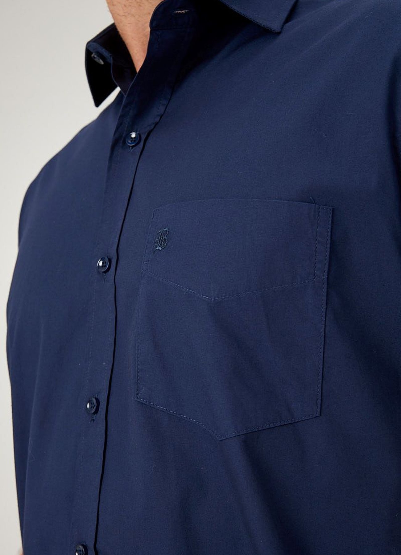 Camisa Social Masculina Manga Curta Premium Tradicional Azul Marinho com Bolso