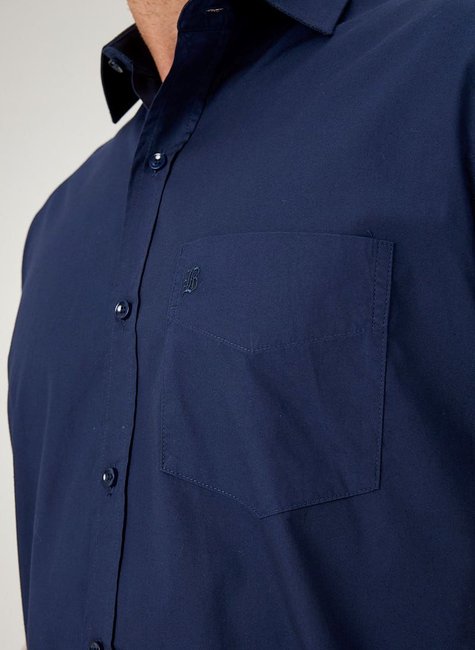 Camisa Premium manga curta azul marinho com modelagem ampla, bolso frontal e gola entretelada. Conforto e estilo para o dia a dia.
