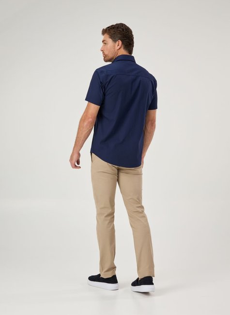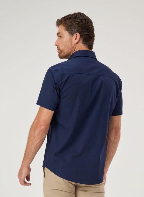• 1 Camisa Masculina Manga Curta Premium Tradicional Azul Marinho com Bolso