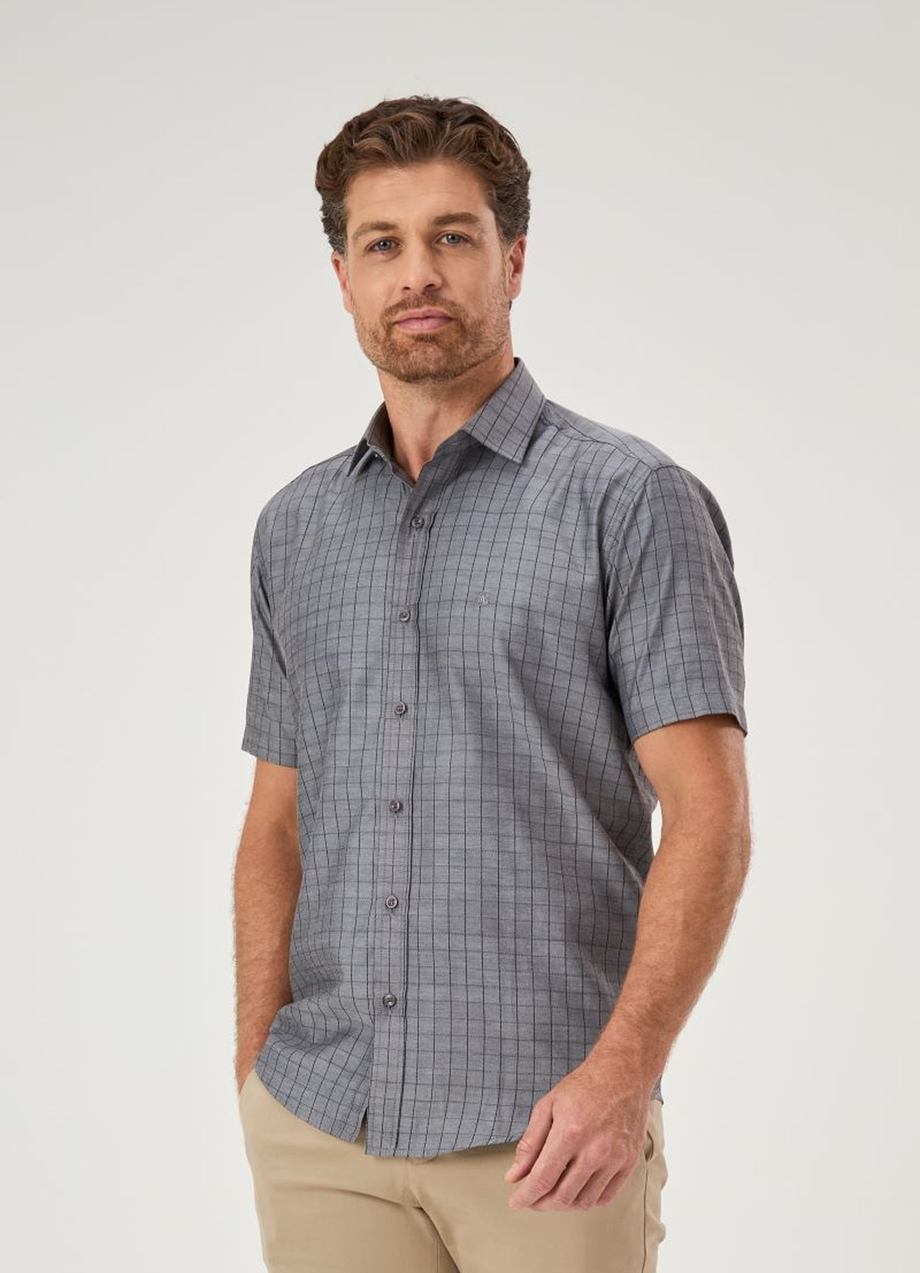 A Camisa Masculina Premium Tradicional Baumgarten em xadrez cinza combina sofisticação, conforto e exclusividade em uma peça atemporal de manga curta. Com modelagem tradicional (ampla), oferece caimento impecável e liberdade de movimento, perfeita para ocasiões casuais ou eventos sociais.