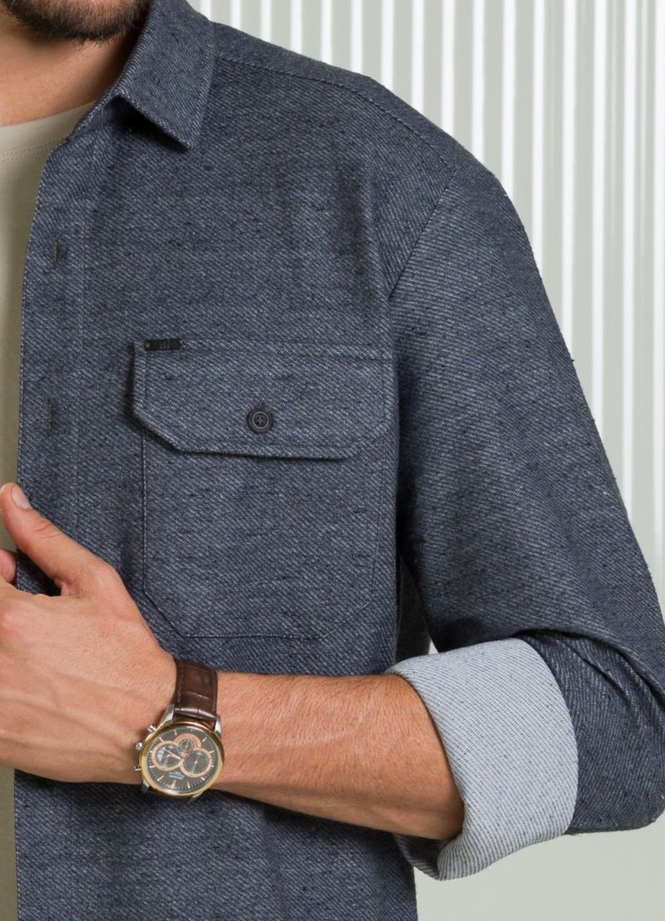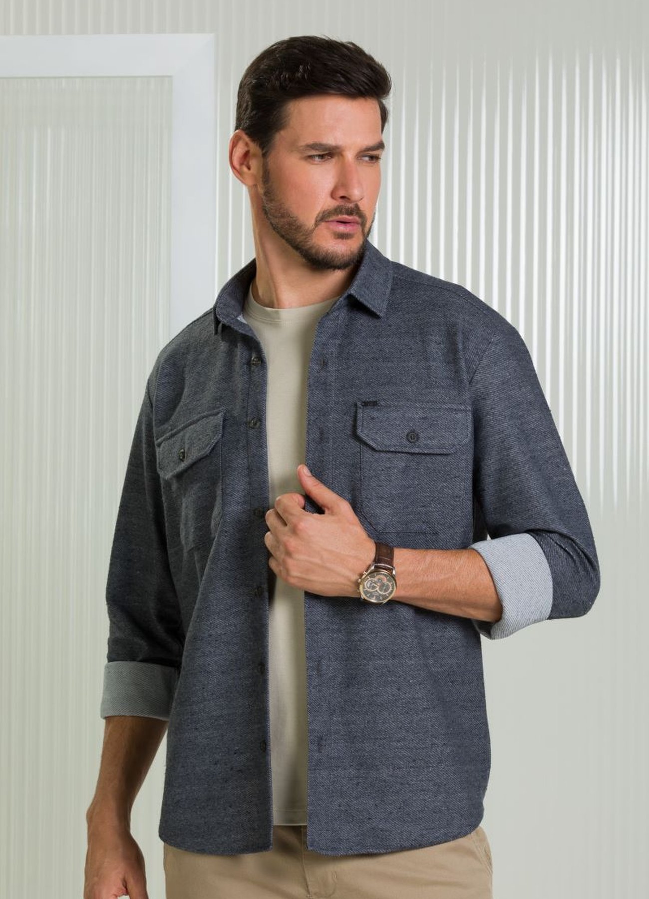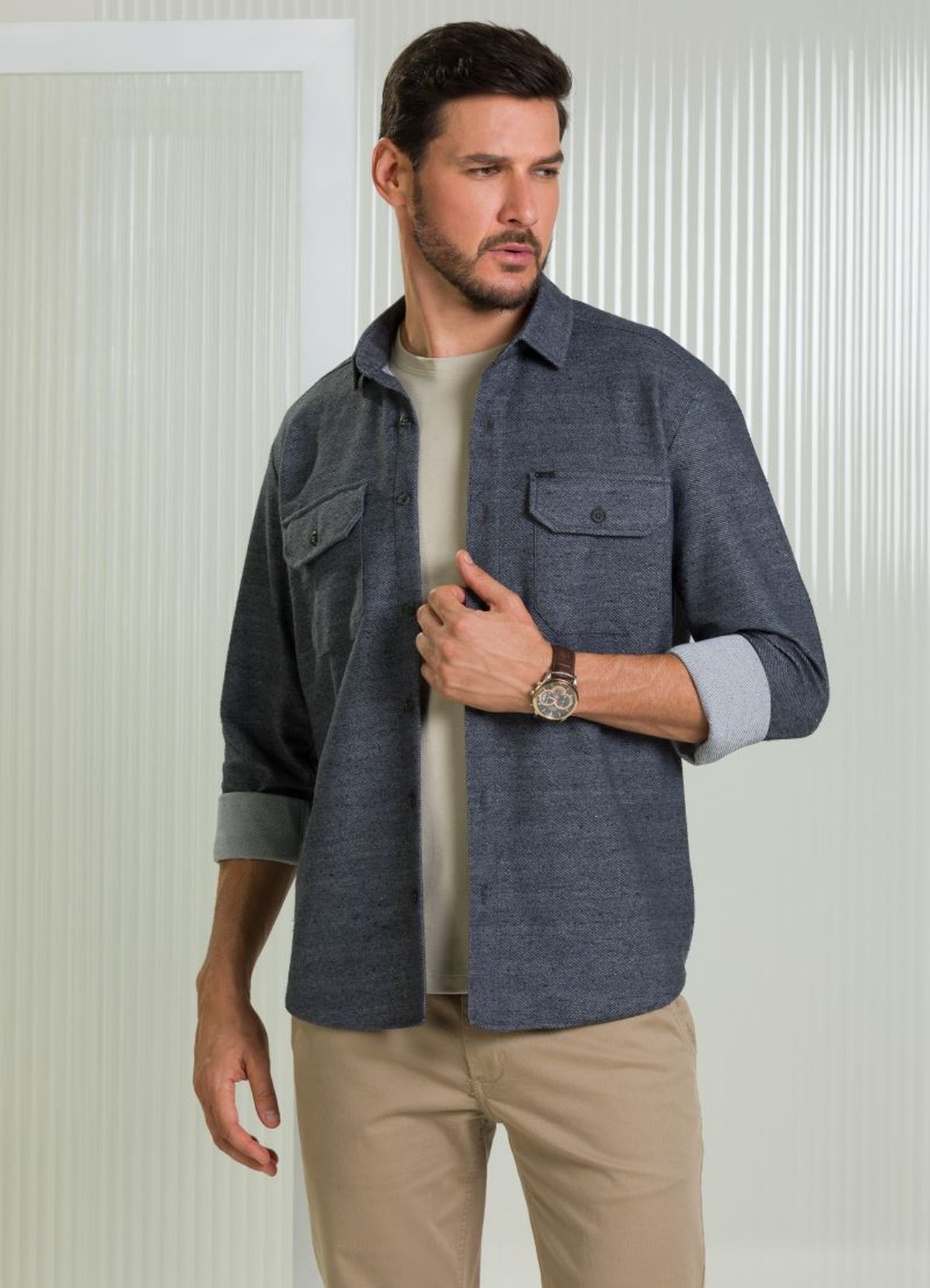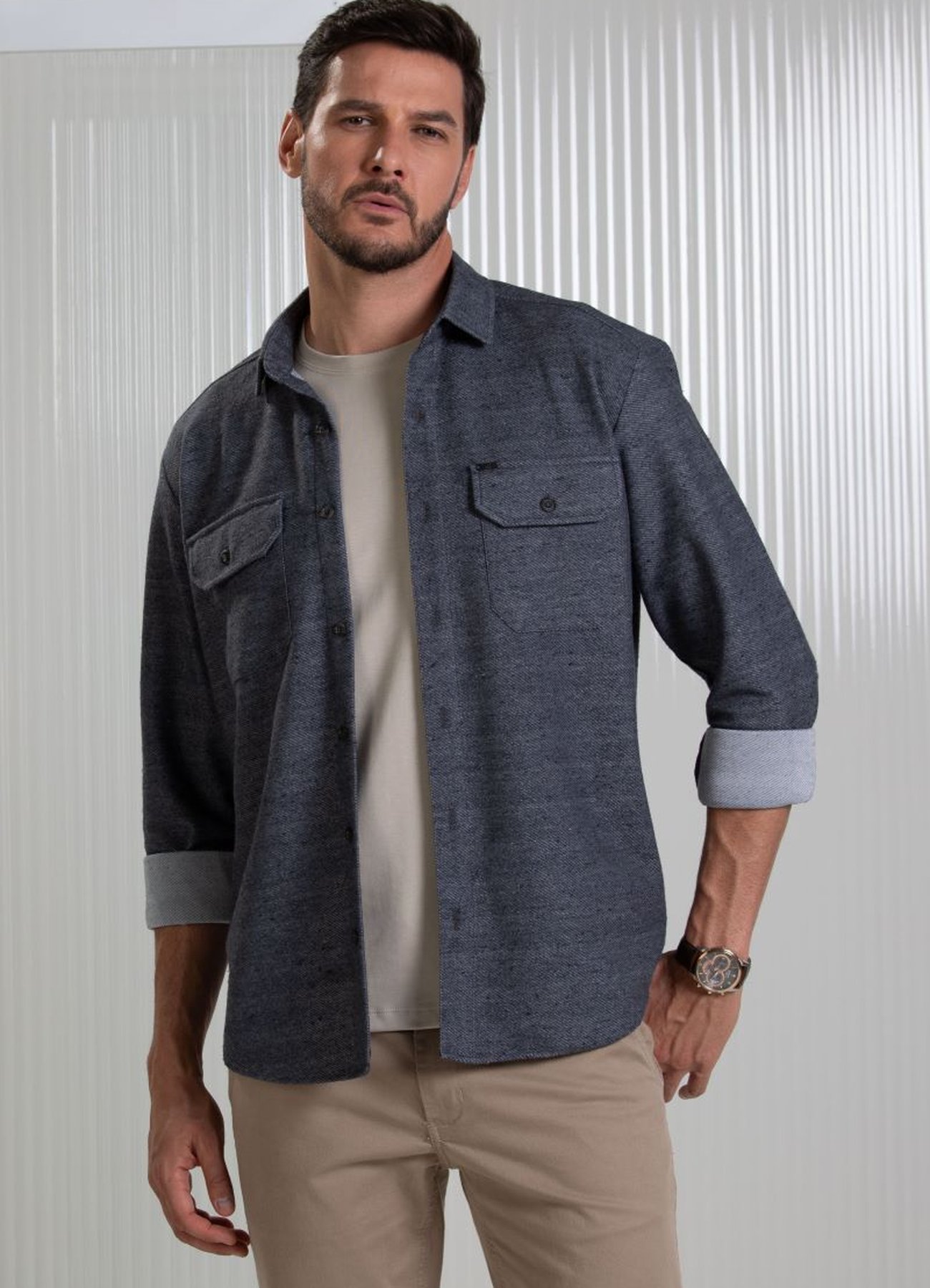 Sobre a Camisa Masculina Manga Longa BGT Slim Tecido Encorpado Mescla