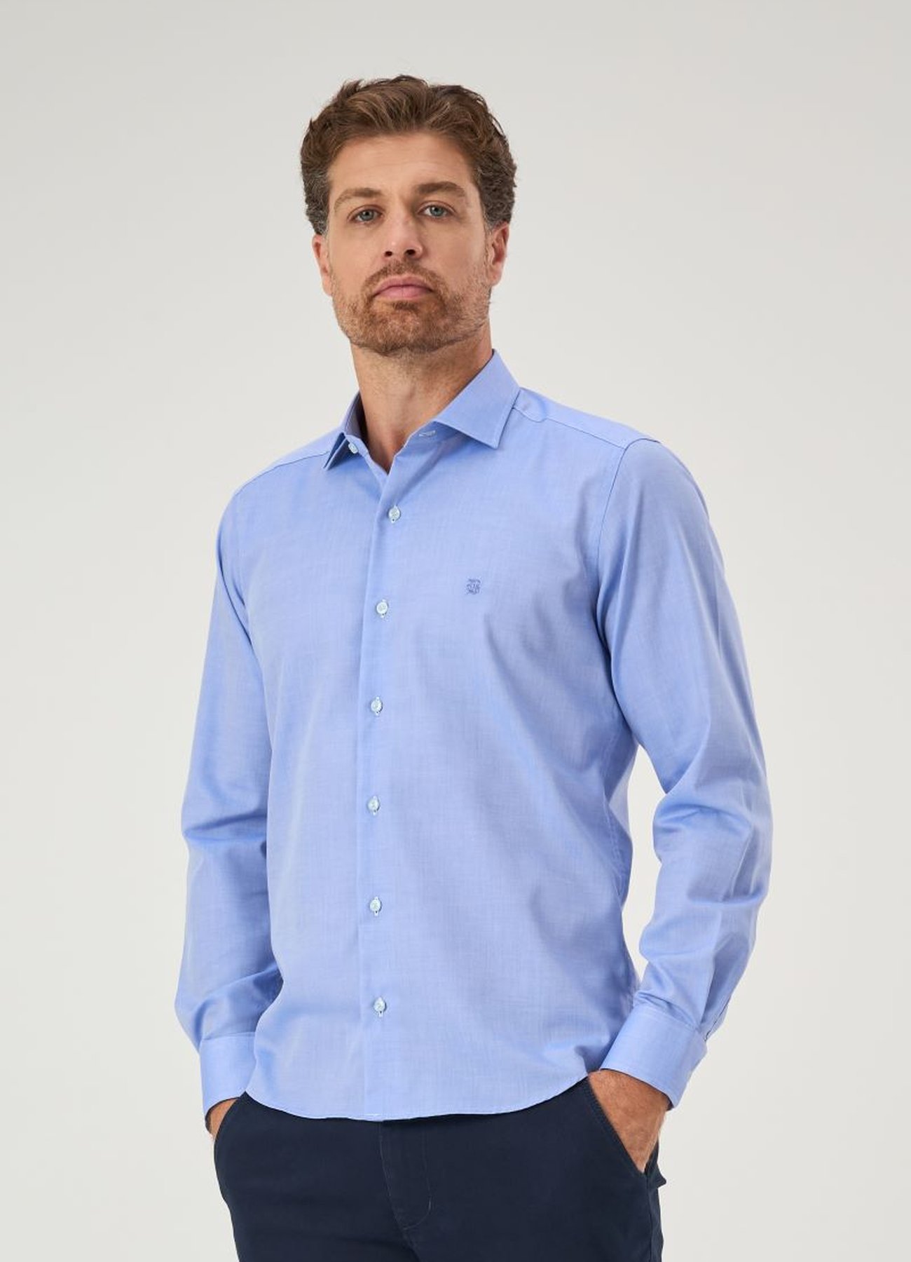 Sobre a Camisa Masculina Manga Longa Elegance Algodão Egípcio Azul