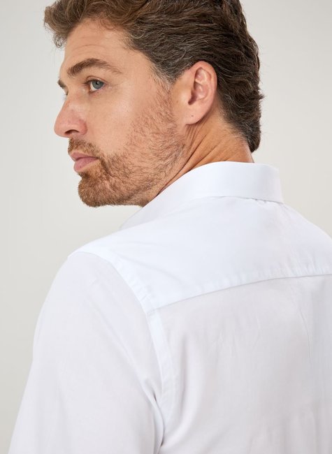 A Elegance Slim branca em algodão Pima entrega sofisticação com toque macio, caimento slim e acabamento impecável. Ideal para visuais clássicos e elegantes.