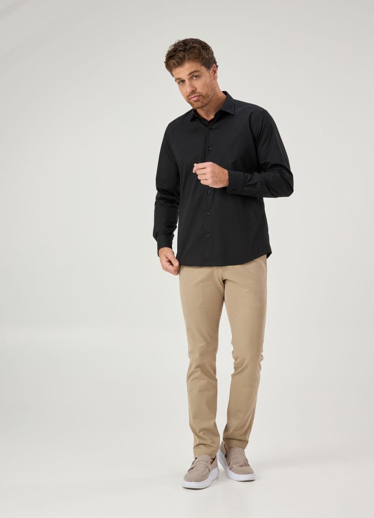 Camisa Social Masculina Manga Longa Elegance Slim Lisa Preta