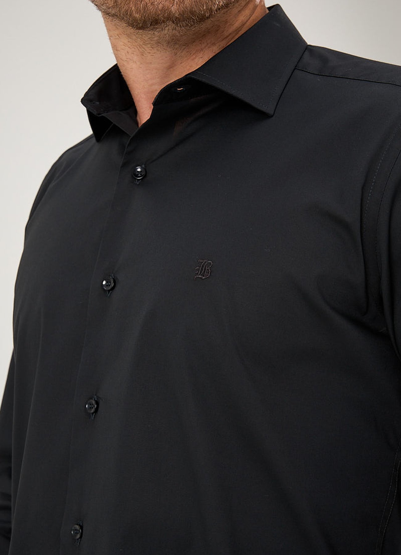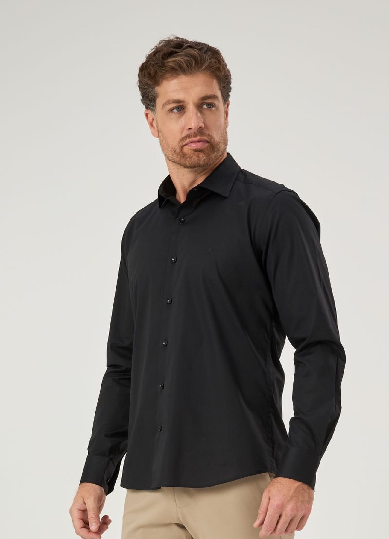 Camisa Social Masculina Manga Longa Elegance Slim Lisa Preta Preta