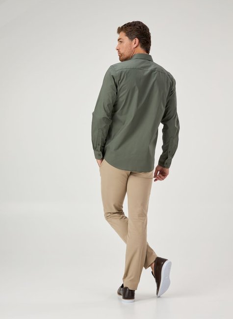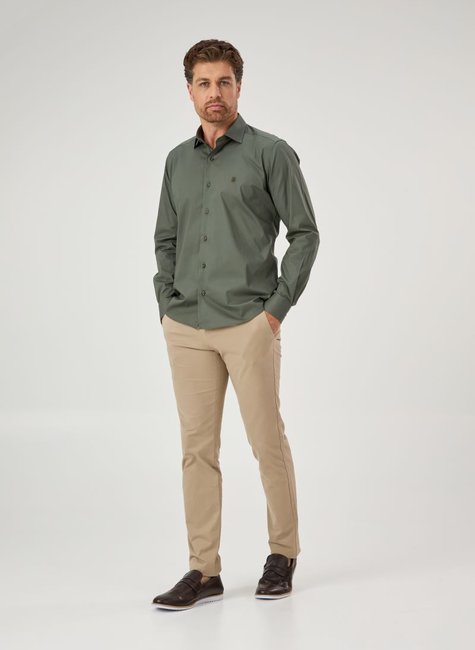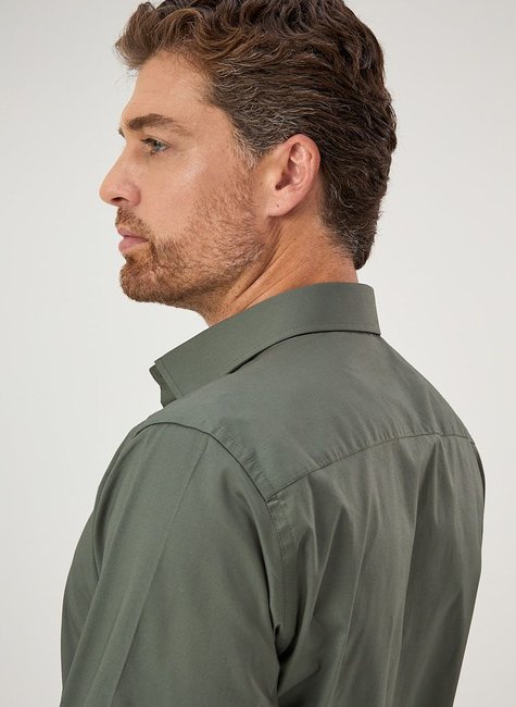 Sobre a Camisa Masculina Manga Longa Elegance Lisa Verde Musgo