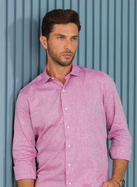 Camisa Masculina Manga Longa Elegance Slim Maquinetada Rosa Envelhecido
