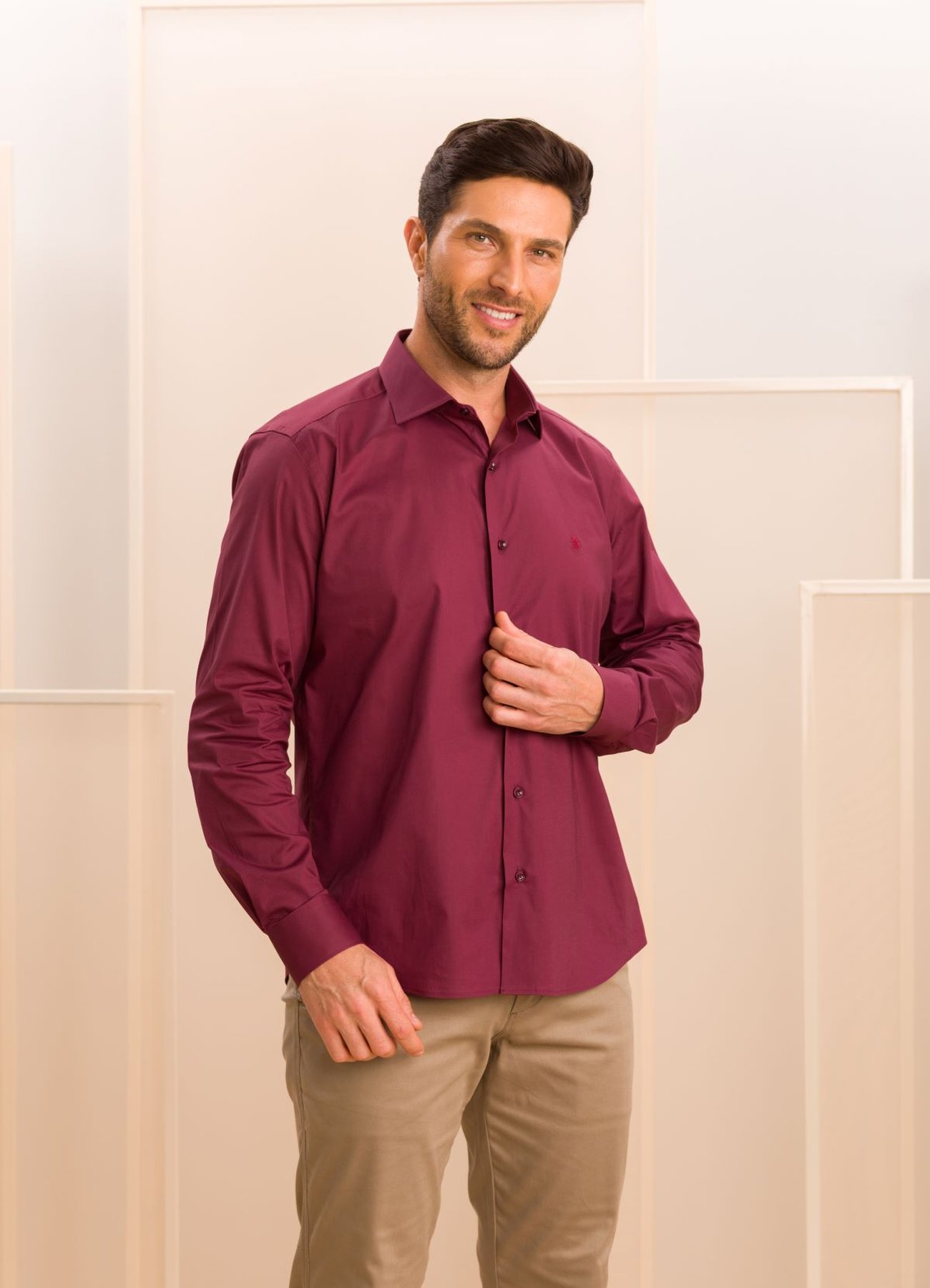 Sobre a Camisa Masculina Manga Longa Elegance Slim Lisa Bordô