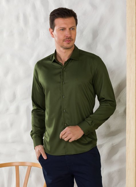 Sobre a Camisa Masculina Manga Longa Elegance Slim Lisa Verde Viscose de Bambu