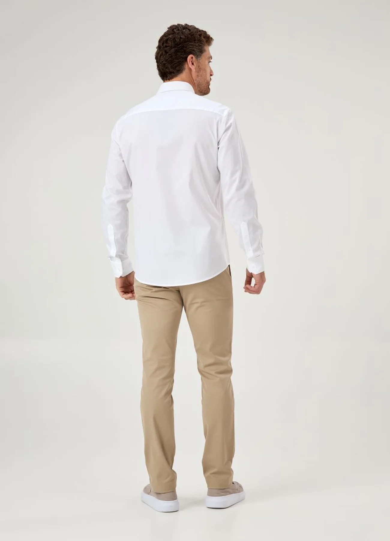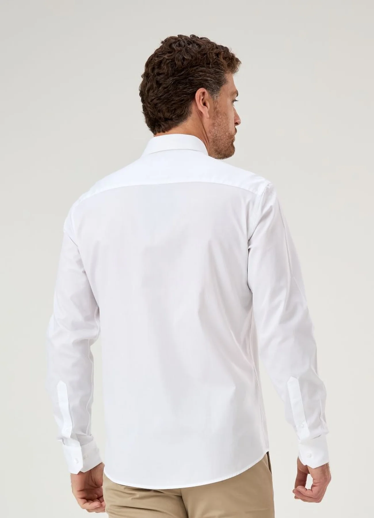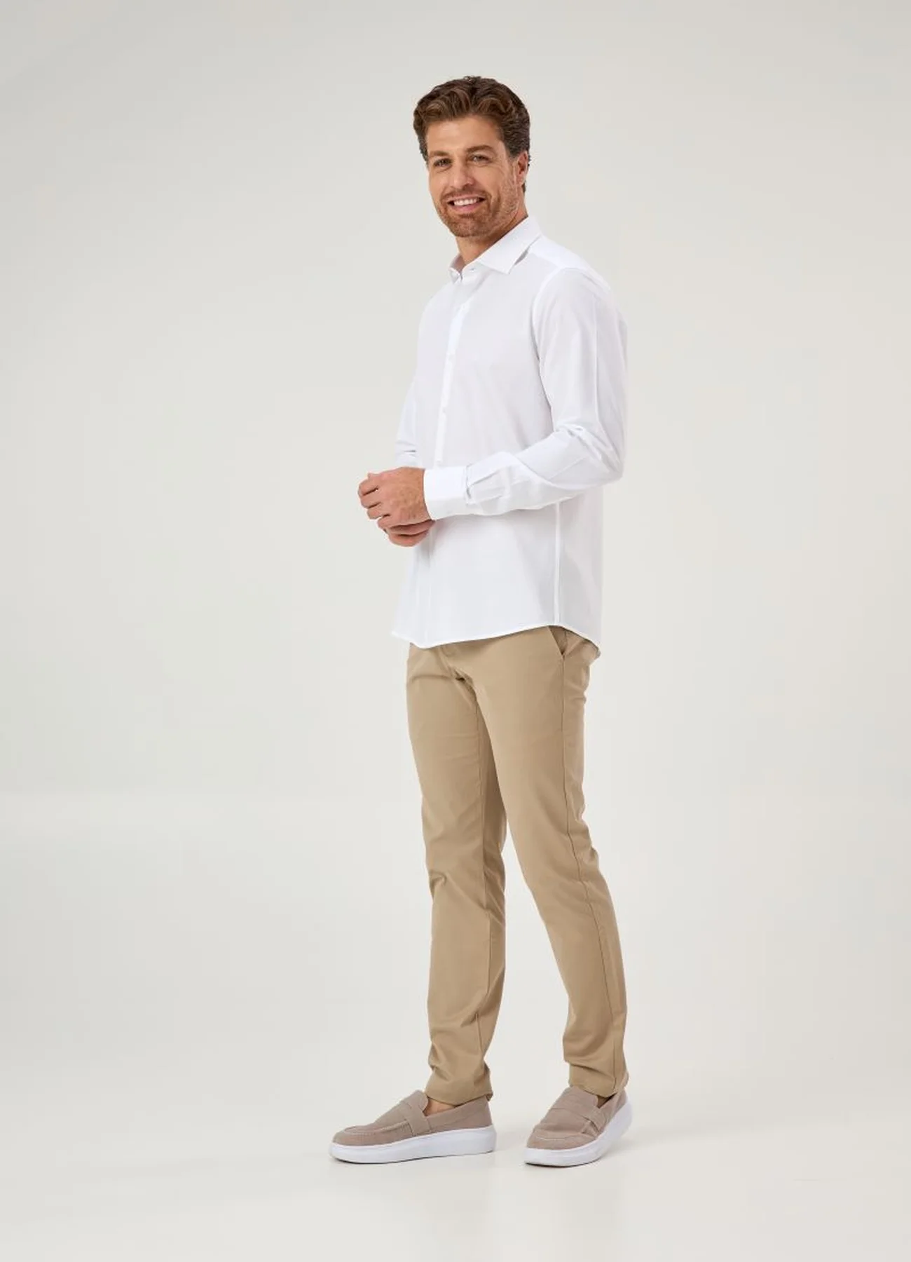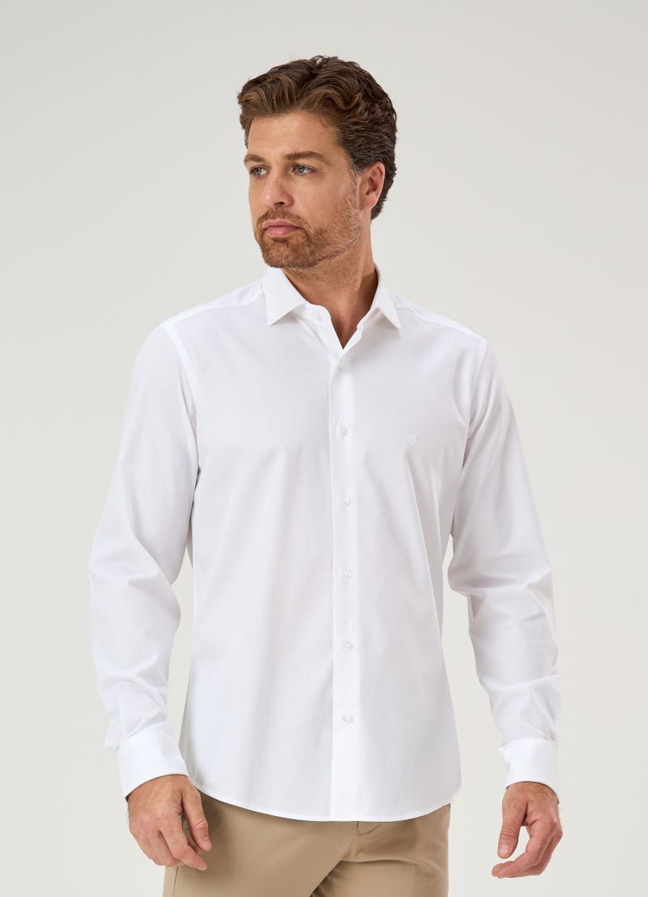 Camisa Social Masculina Manga Longa Elegance Slim Algodão Pima Maquinetado Branco