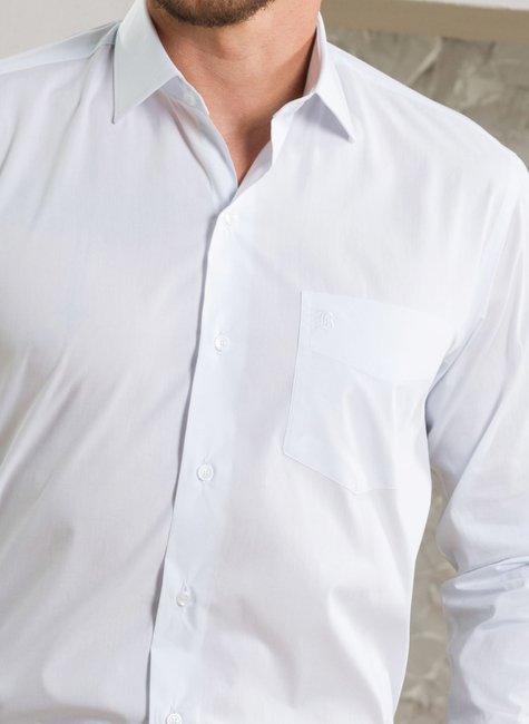 Camisa Premium Tradicional branca, lisa e com bolso funcional. Modelagem tradicional, toque macio e acabamento refinado para um visual elegante e versátil.