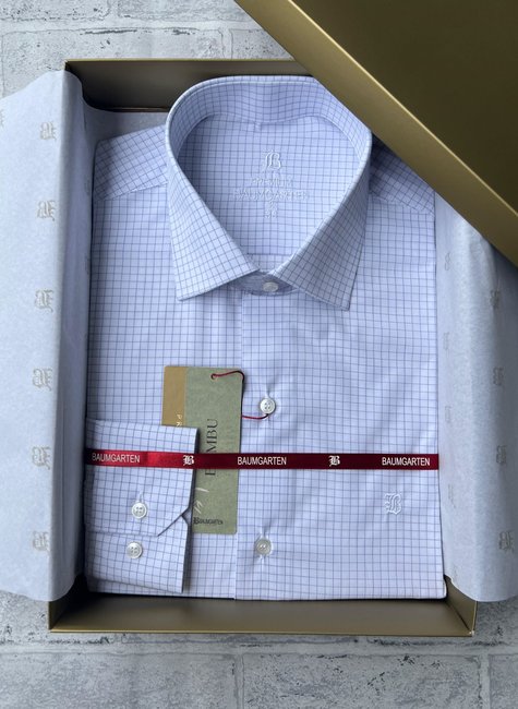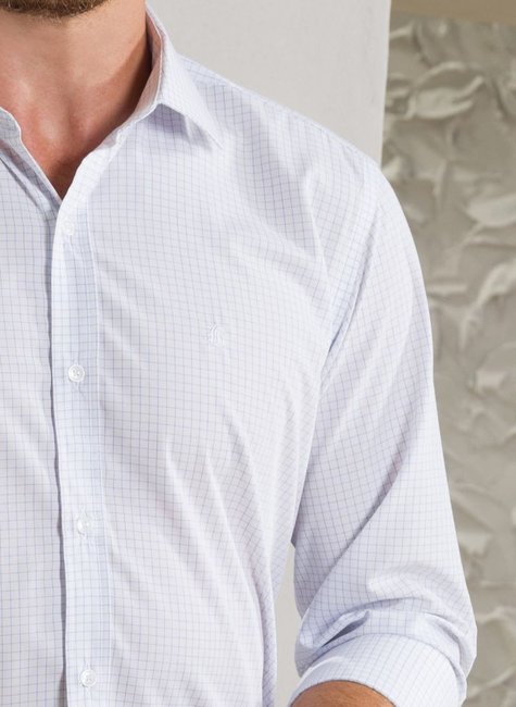 A Camisa Premium Tradicional Baumgarten em xadrez azul e branco une elegância, conforto e sofisticação.