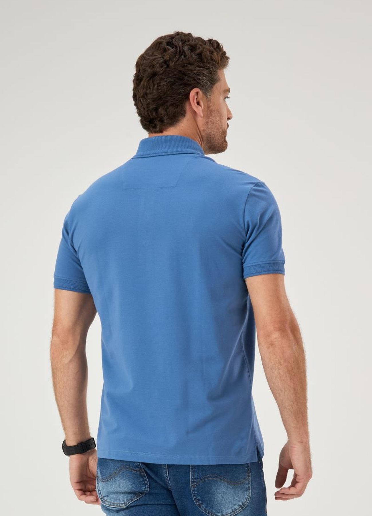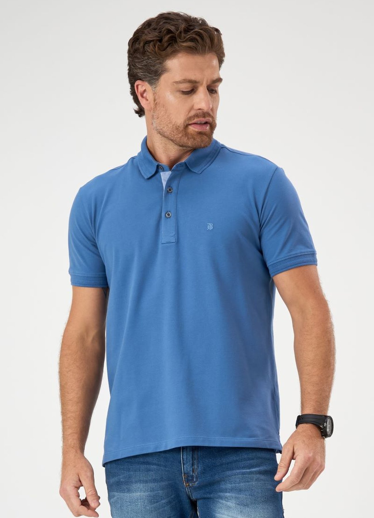 Camisa Polo Masculina Piquet Azul Índigo com caimento confortável e toque sofisticado. Ideal para looks versáteis e elegantes.