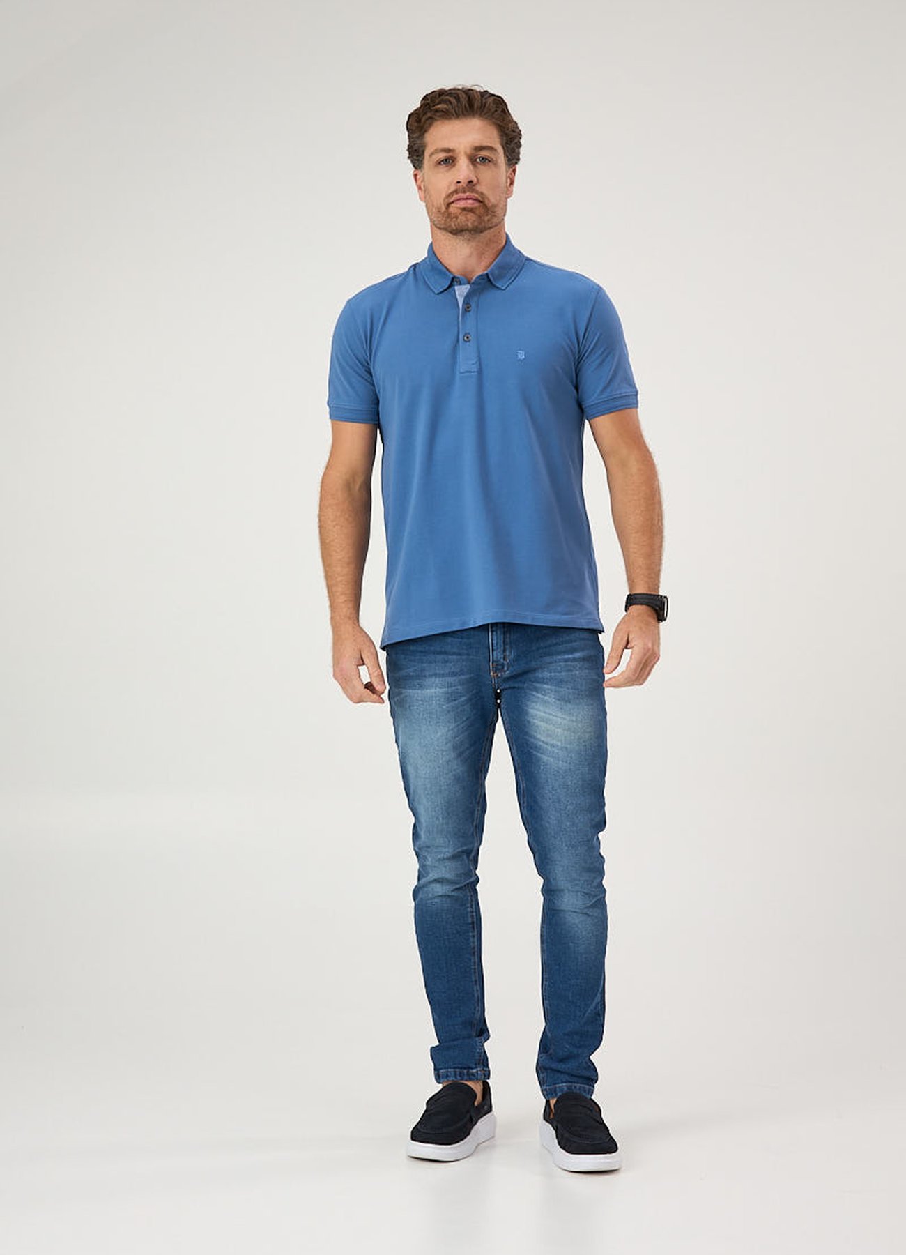 A Camisa Polo Piquet Azul Índigo combina sofisticação e conforto em uma peça versátil e moderna. Sua modelagem slim moderada proporciona um caimento alinhado e elegante, ideal para diversas ocasiões, desde encontros casuais até ambientes mais formais. O tom azul índigo transmite um ar refinado e atemporal, fácil de combinar com diferentes estilos. Produzida em piquet de fio 40/1 penteado, a camisa garante maciez, leveza e alta respirabilidade, proporcionando conforto absoluto ao longo do dia.