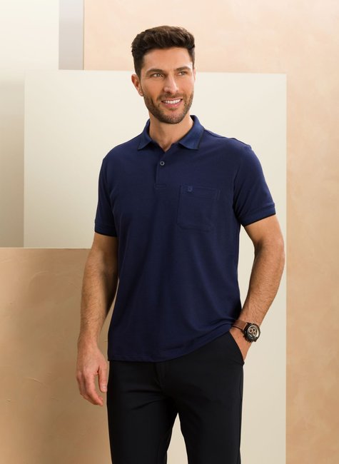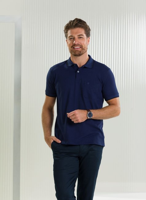 camisa polo masculina azul marinho com bolso baumgarten frente