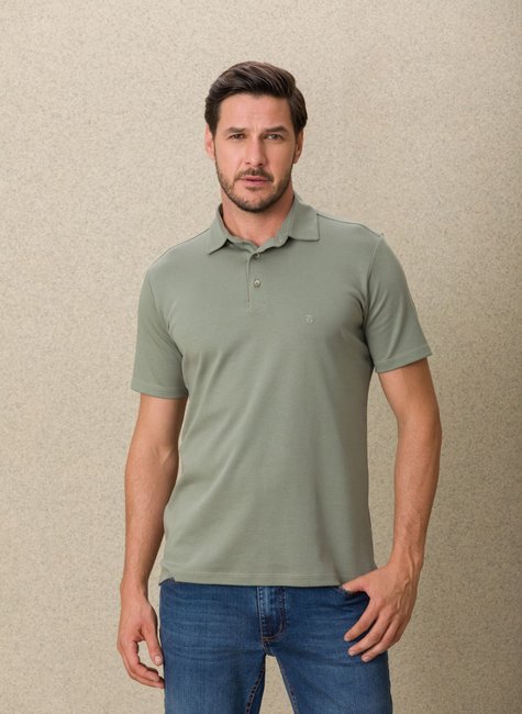 • 1 Camisa Masculina Polo Manga Curta Suedine Gold D+ Verde Oliva