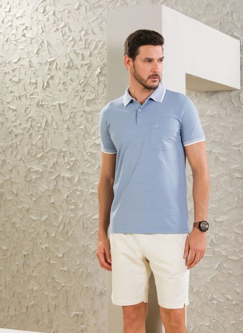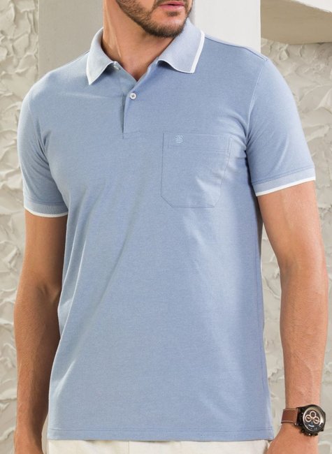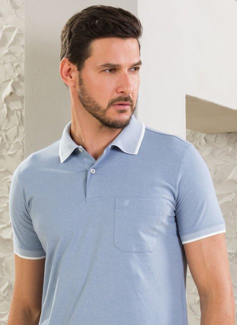 Camisa Masculina Polo Manga Curta Azul Bebê com Bolso