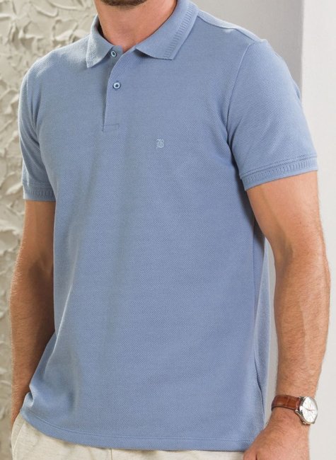 Camisa Masculina Polo Manga Curta Texturizada Azul Claro