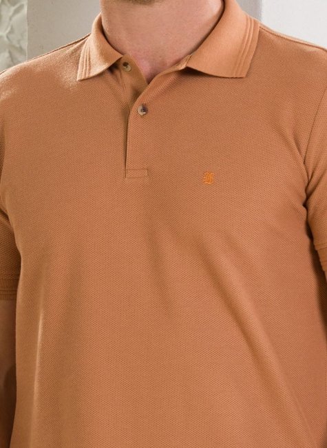 Camisa Masculina Polo Manga Curta Texturizada Caramelo