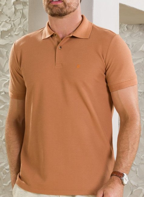 • 1 Camisa Masculina Polo Manga Curta Texturizada Caramelo