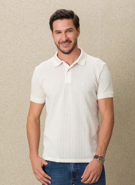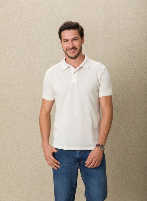 Camisa Masculina Polo Manga Curta Texturizada Off White