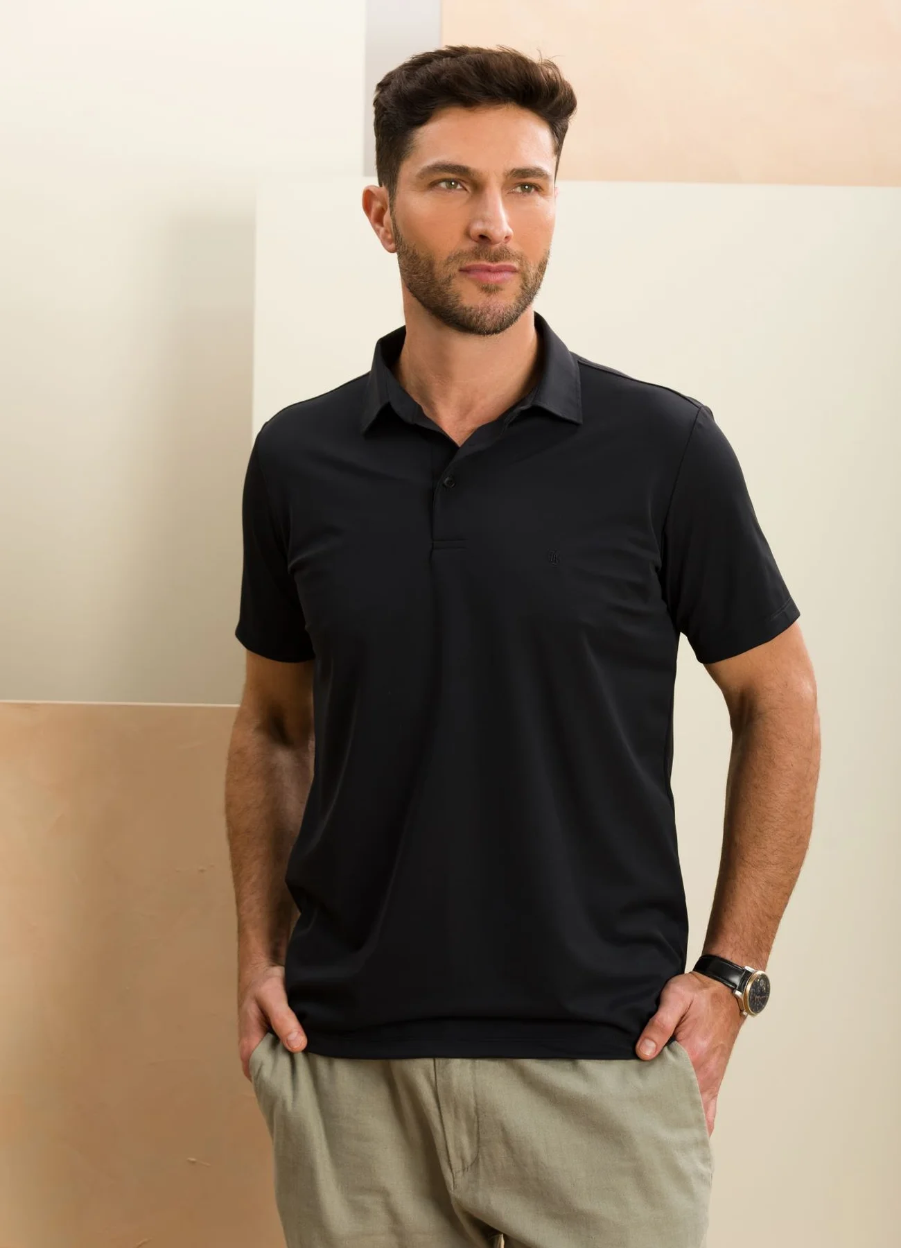 Camisa Masculina Polo Manga Curta Ultra Stretch Preta