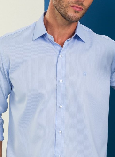 Camisa Masculina Manga Longa Premium Tradicional Mini Listras Azul Claro