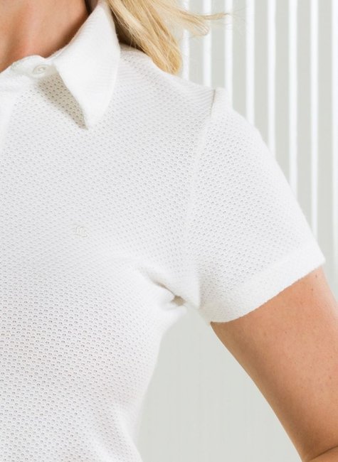 • 1 Camisa Polo Feminina Manga Curta Texturizada Off White