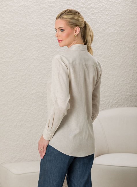 Camisa Woman Comfy Manga Longa Bege Linho com Algodão