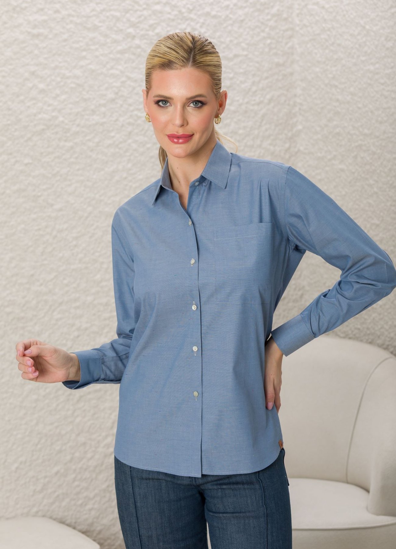 Estilo casual, leve e moderno. A Camisa Woman Comfy Manga Longa Cinza Azulado é ideal para mulheres que prezam por conforto sem abrir mão da elegância. Com sua modelagem ampla e fluída, ela é perfeita para looks descomplicados, seja usada sozinha ou sobreposta com camiseta básica.
