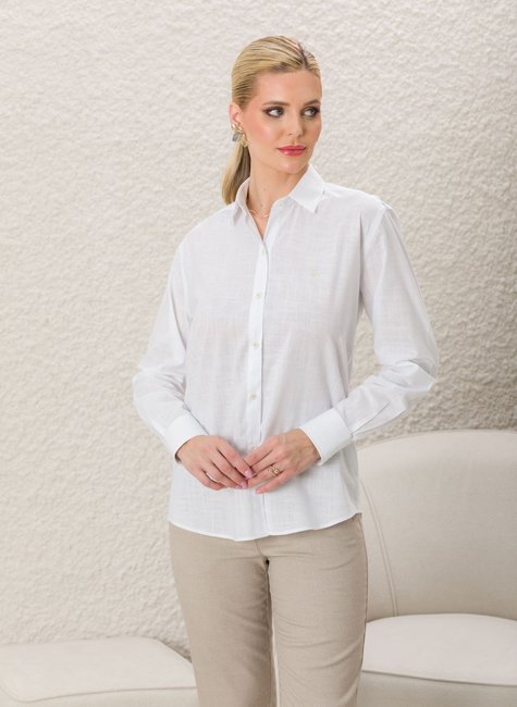 Camisa Woman Comfy Manga Longa Lisa Branca
