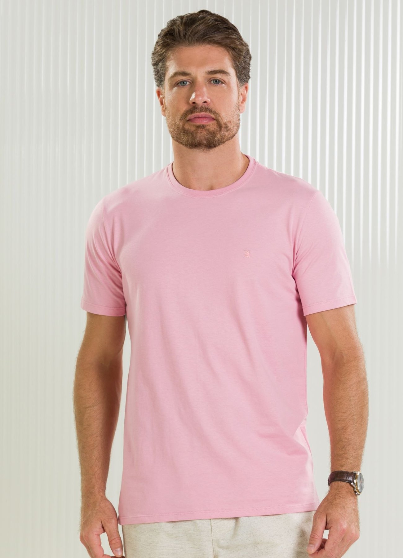 • 1 Camiseta Masculina Manga Curta Básica Rosa Claro