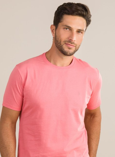 • 1 Camiseta Masculina Manga Curta Básica Rosa Salmão