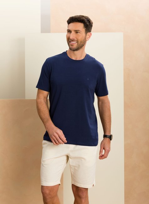 Camiseta masculina com modelagem slim moderada, confeccionada em algodão com elastano para maior conforto e flexibilidade. Acabamento refinado, costuras reforçadas e bordado discreto que garantem durabilidade e estilo em qualquer ocasião.