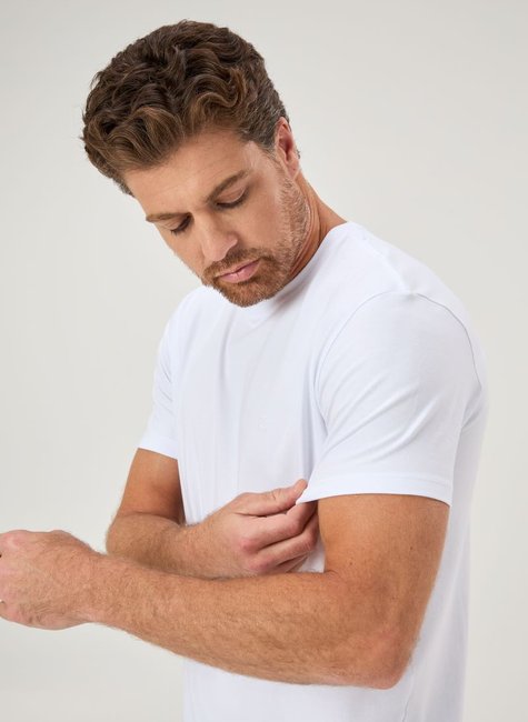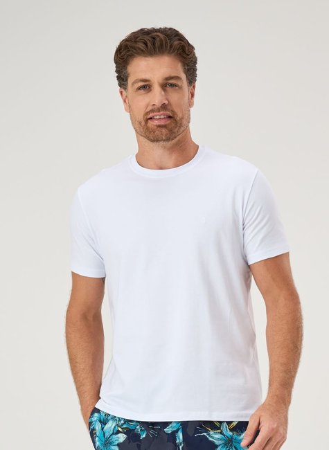 Camiseta Masculina Manga Curta Básica Algodão com Elastano Branco