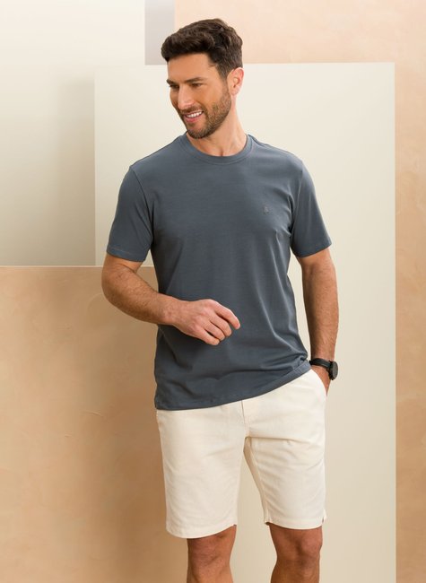 Camiseta masculina com modelagem slim moderada, confeccionada em algodão com elastano para maior conforto e flexibilidade. Acabamento refinado, costuras reforçadas e bordado discreto que garantem durabilidade e estilo em qualquer ocasião.