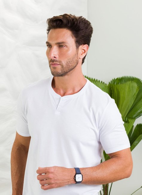 Camiseta Masculina Manga Curta Gola Mandarim Branca