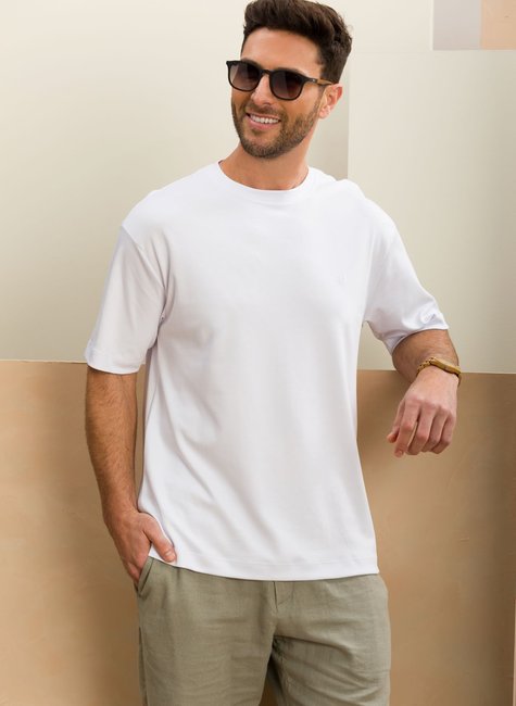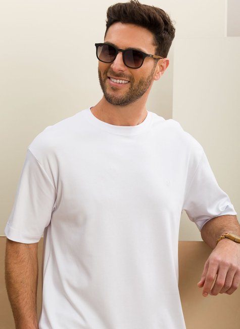 • 1 Camiseta Masculina Manga Curta Oversized Suedine Gold D+ Branca