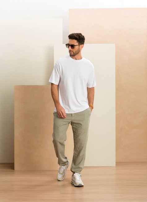 Na cor branca, é uma peça versátil, sofisticada, essencial no guarda-roupa masculino contemporâneo.