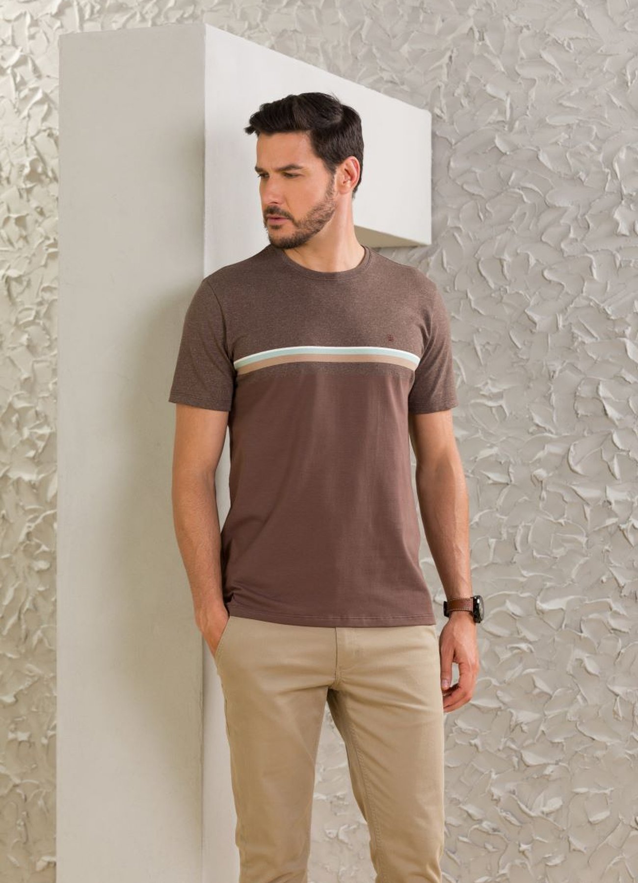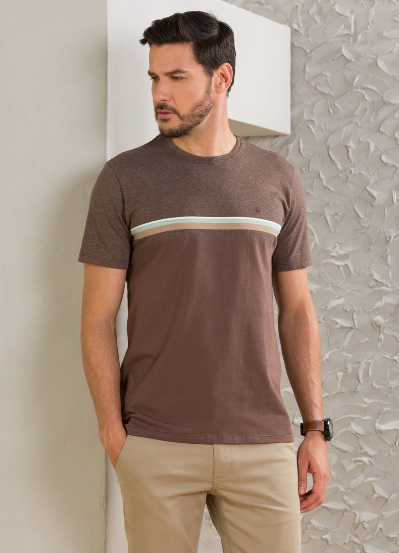 Sobre a Camiseta Masculina Manga Curta Rapport Marrom