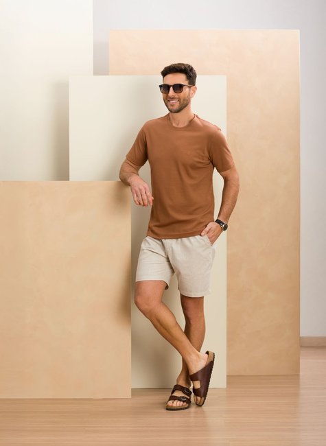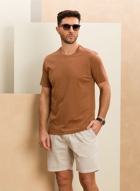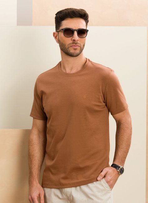 Camiseta Masculina Manga Curta Suedine Gold D+ Marrom