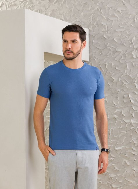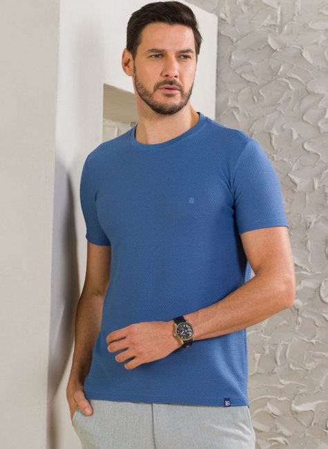 Camiseta Masculina Manga Curta Texturizada Azul Médio