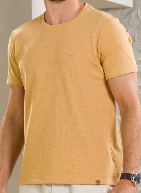 Camiseta Masculina Manga Curta Texturizada Caramelo Claro