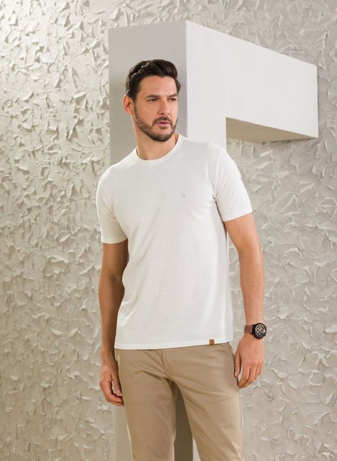 • 1 Camiseta Masculina Manga Curta Texturizada Off White