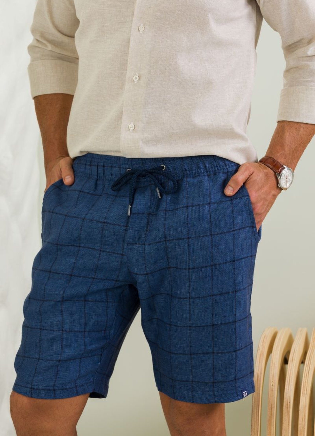 Sobre o Shorts Casual Masculino Azul Xadrez