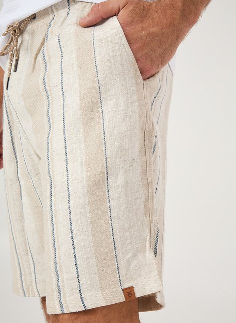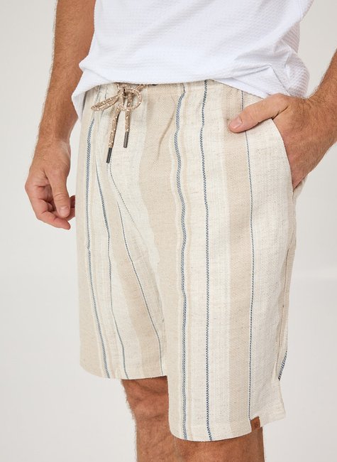 Shorts Casual Masculino Bege Barra Listras Verticais